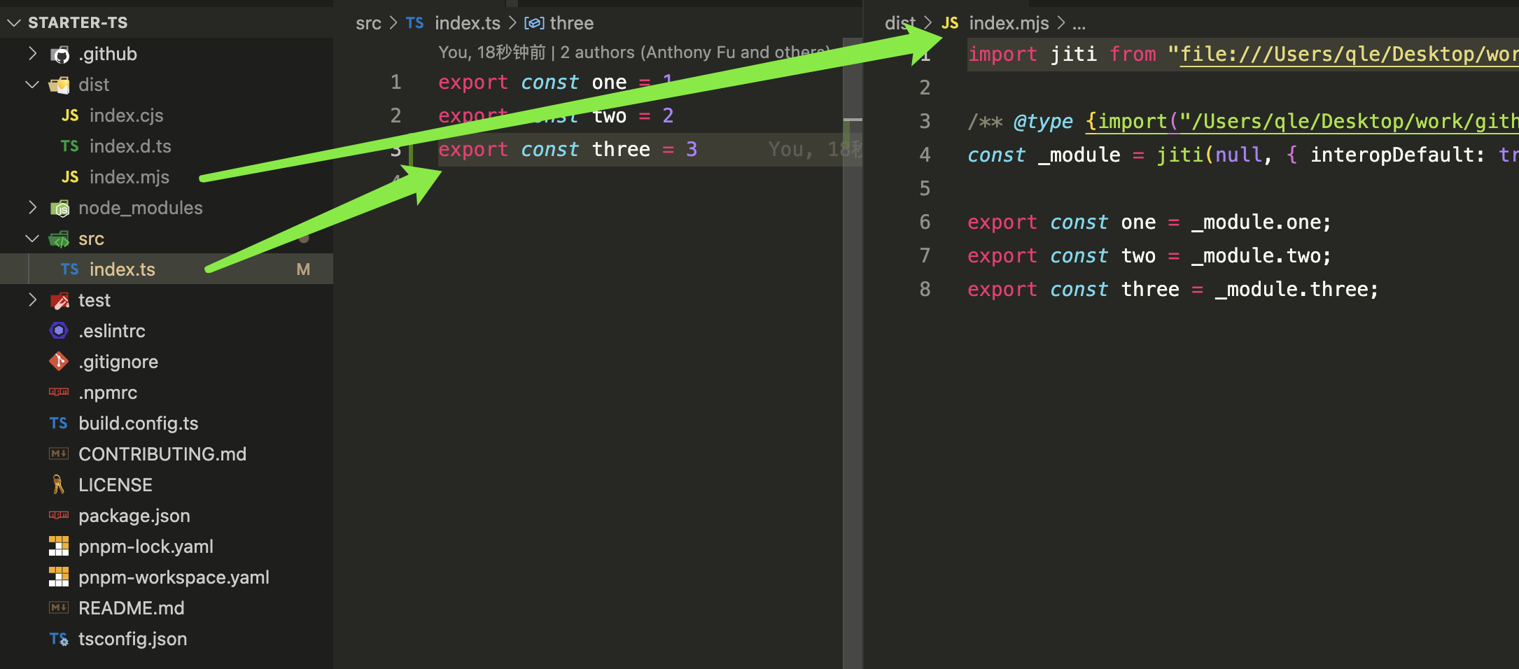 # src/index.ts 新增一行代码 export const three = 3